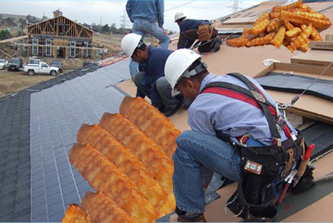 (WriteGoodwire) While consumer acceptance of Burger King’s recently introduced “Satisfries” remains tepid, the chain’s new healthy option to conventional french fries is proving to be an excellent building material, especially in the roofing trade.